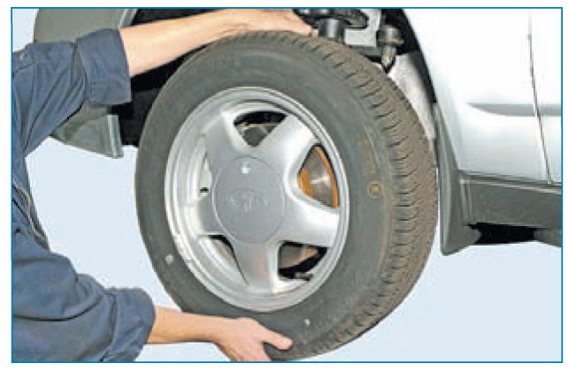 3. Прокачайте колесо. Тут важно удерживать колесо с двух сторон и максимально прочно зажать его. Раскачивать нужно в направлении от себя в одинаковом направлении.