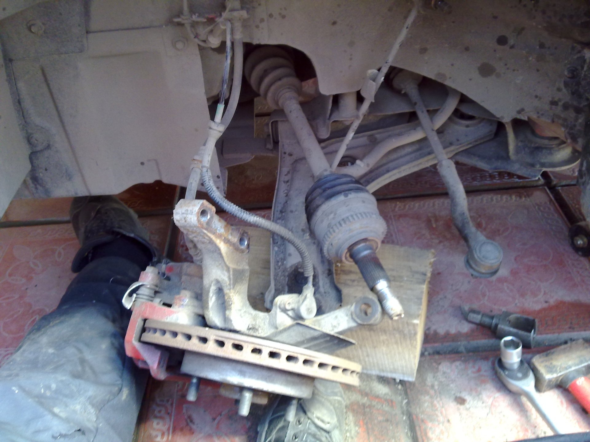 - Обеспечьте неподвижность или ограниченное движение полуоси. Если этого не сделать, полуось будет перемещаться при ударах молотком по обойме гранаты. Из-за этого внутренний ШРУС попросту выйдет из контакта, разделится на части внутри пыльника. Потому придется демонтировать узел полностью, а это уже очень сложная задача.