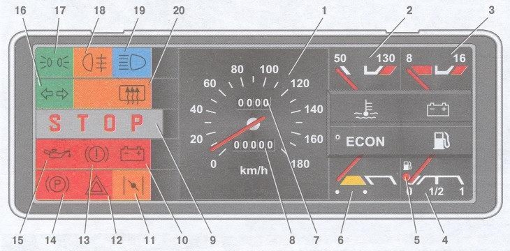 Согласно представленному изображению, компоненты у комбинации приборов следующие.