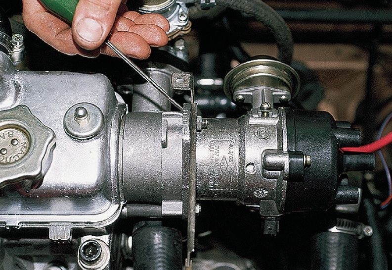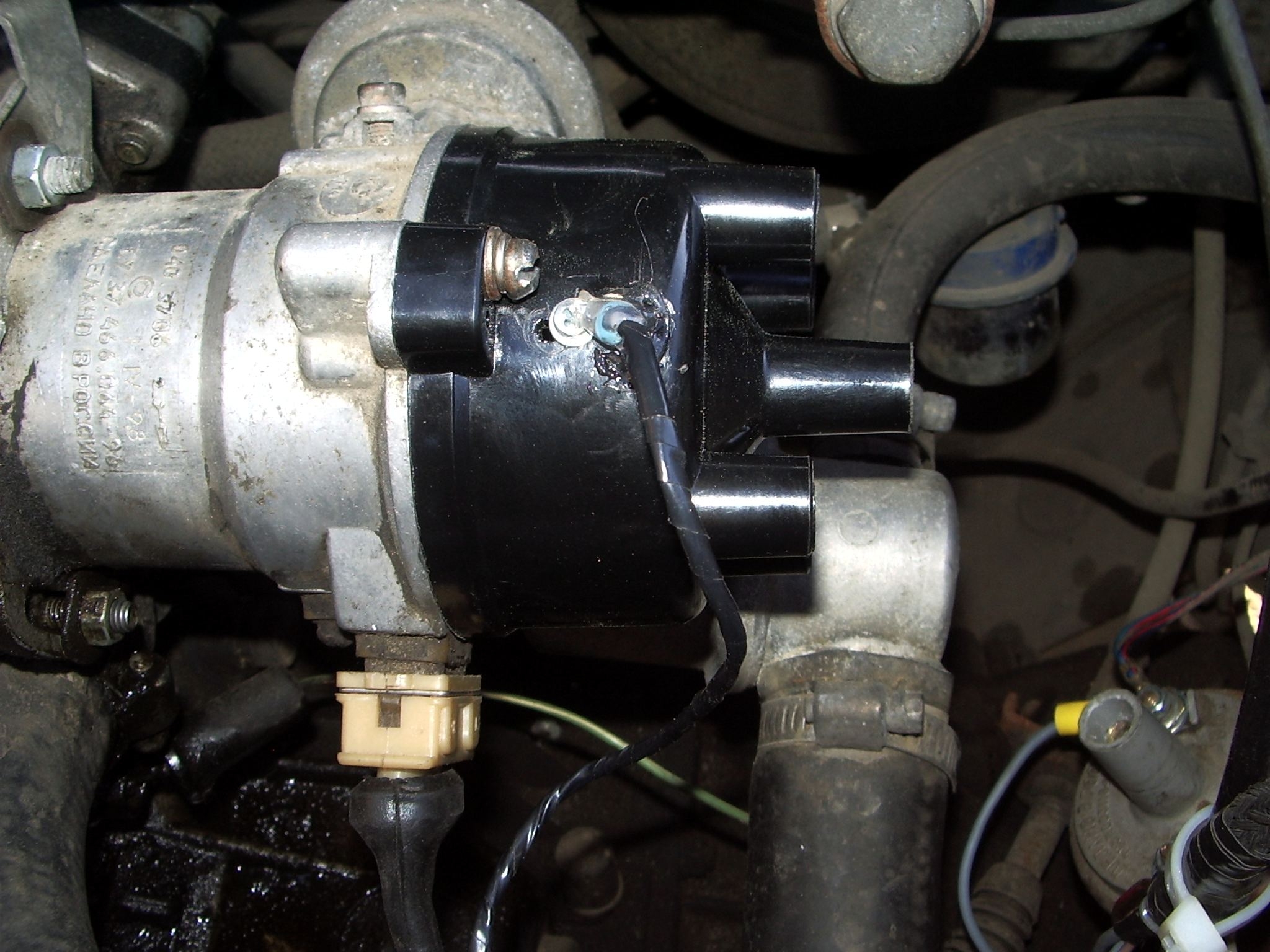 - Отключите бронепровода от трамблера, отключите шланг от вакуум-корректора.