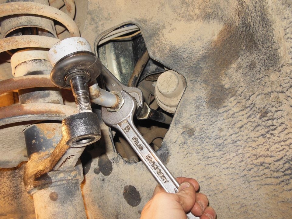 - Накидным ключом открутите крепежные гайки поврежденного, вышедшего из строя наконечника. Если при откручивании возникают проблемы, крепеж не хочет отходить, еще раз обработайте вэдэшкой, подождите и повторите попытку. Возьмите больший рычаг, что упростит выполнение задачи.