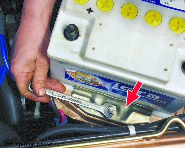 - С двигателя снимается провода массы и наконечник провода минусового вывода аккумуляторной батареи.