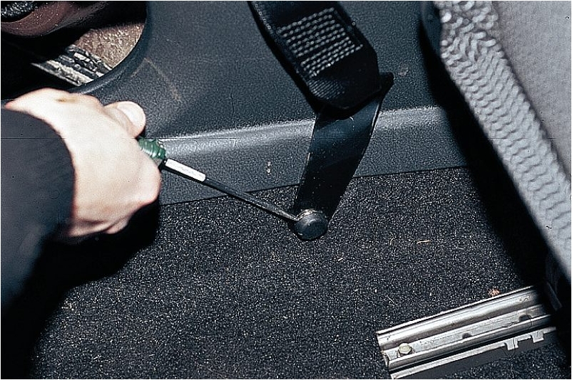 1. Снимите катушку безопасности. Для этого не требуется демонтировать сиденья. Просто сдвиньте их до упора вперед и опустите вперед спинку.