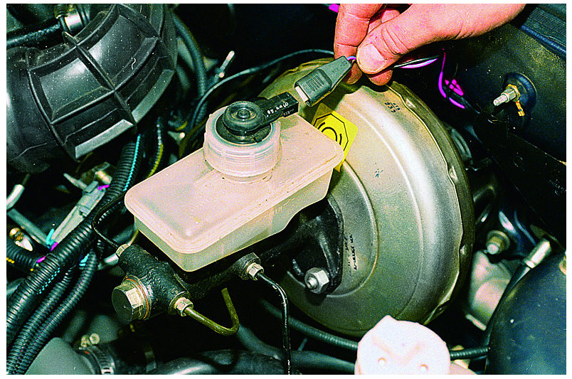 - Снимая колодку с проводами (при замене вакуумного усилителя), обязательно закройте все открытые отверстия, чтобы туда не попадала пыль, грязь, тормозная жидкость.