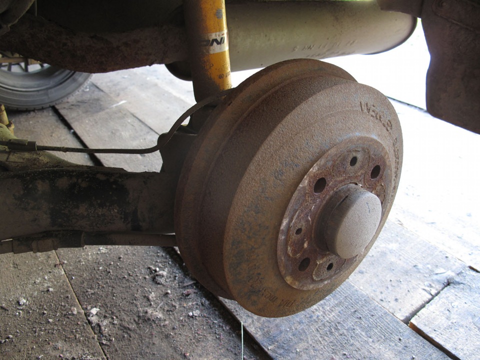 • Молотком аккуратно сбейте тормозной барабан, предварительно зачистив его посадочное место металлической щеткой и средством WD40;