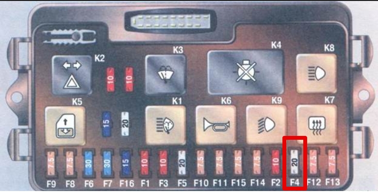 - Первая ситуация — вышел из строя предохранитель на прикуриватель ВАЗ 2114. Популярная проблема, которая не так сложна в решении. Первоочередная задача заключается в том, чтобы определить, где находится предохранитель прикуривателя у ВАЗ 2114. Это просто. Откройте люк, где расположен весь блок предохранителей. Искомый вами элемент находится слева от рулевой колонки. Это 20-амперный предохранитель, на котором имеется специальная маркировка — F4. С другими перепутать его сложно, потому отыскать предохранитель — это совершенно не проблема. Возьмите тестер, проверьте его функциональность. Если работает, продолжаем поиски проблемы. Если же предохранитель вышел из строя, достаточно просто приобрести новый. Стоит он дешево, потому проблем с поиском и покупкой возникнуть не должно.